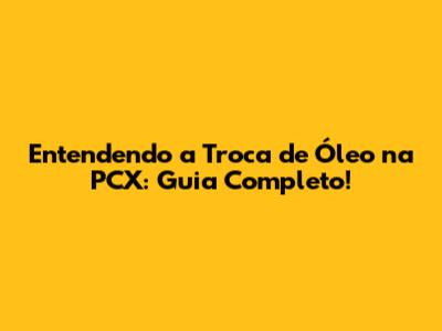 Entendendo A Troca De Óleo Da PCX: Guia Completo!
