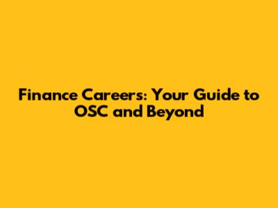 Finance Careers: Your Guide To OSC And Beyond
