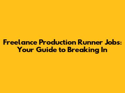 Freelance Production Runner Jobs: Your Guide To Breaking In