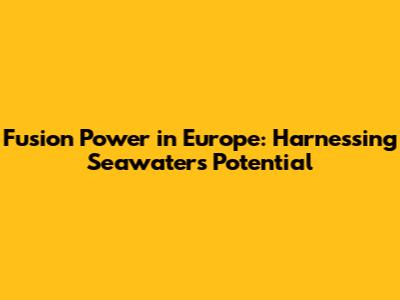 Fusion Power In Europe: Harnessing Seawater's Potential