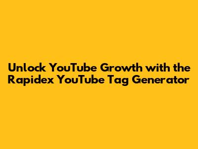 What's up, creators? Ever feel like you're shouting into the void on YouTube? You pour your heart and soul into making awesome videos, but they just aren't getting the views they deserve. It's a common struggle, and often, the culprit isn't your content quality, but how well it's being found. That's where YouTube tags come in, guys, and let me tell you, they are absolute game-changers. Think of them as the breadcrumbs that lead viewers right to your amazing videos. But crafting the perfect set of tags can feel like a never-ending puzzle. You need relevant, high-volume, and specific tags that actually match what people are searching for. It’s a science, and frankly, it can be a real time suck. But fear not! I've got the inside scoop on a tool that’s going to revolutionize your YouTube game: the Rapidex YouTube Tag Generator. This nifty little tool is designed to take the guesswork out of tagging, helping you climb those search results and get your content seen by the right audience. We're talking about transforming your video visibility from 'meh' to 'WOW' with just a few clicks. So, if you're ready to stop feeling invisible and start seeing those view counts climb, buckle up, because we're diving deep into how the Rapidex YouTube Tag Generator can be your secret weapon for YouTube success. Get ready to optimize your videos like a pro and make your content discoverable!