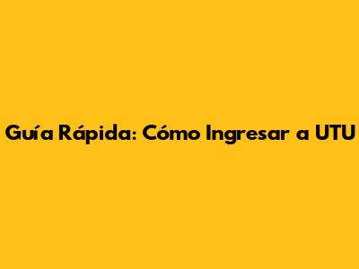 Guía Rápida: Cómo Ingresar A UTU