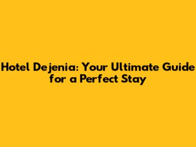 Hotel Dejenia: Your Ultimate Guide For A Perfect Stay