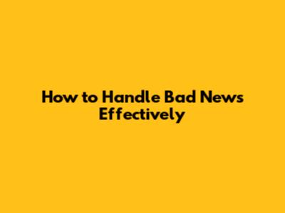 How To Handle Bad News Effectively