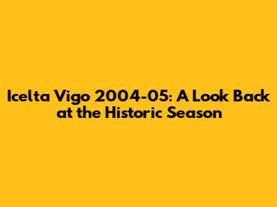 \nLet's dive into a nostalgic journey back to the 2004-05 season with Icelta Vigo. This season was nothing short of memorable for fans of the club, marked by both triumphs and challenges that have etched it into the annals of football history. We're going to explore the key aspects of that year, from the squad composition and significant matches to the overall performance and lasting impact. If you're a die-hard supporter or just a football enthusiast, get ready to relive some incredible moments.