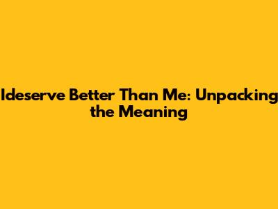 Ideserve Better Than Me: Unpacking The Meaning