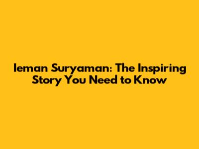 Ieman Suryaman: The Inspiring Story You Need To Know
