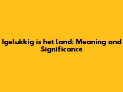 Igelukkig Is Het Land: Meaning And Significance