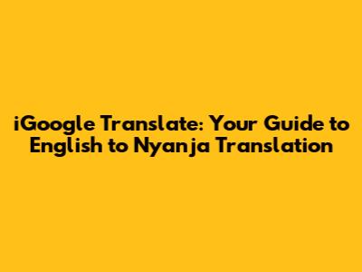 IGoogle Translate: English To Nyanja Guide