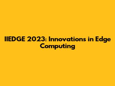 IIEDGE 2023: Innovations In Edge Computing