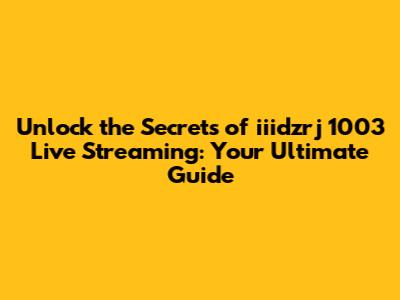 Understanding the iiidzrj 1003: What Makes It Special for Live Streaming?