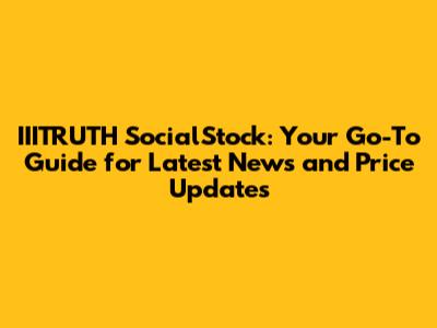 IIITRUTH SocialStock: Latest News & Price Updates