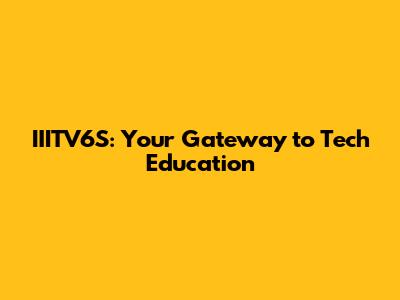 IIITV6S: Your Gateway To Tech Education