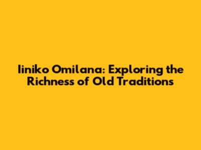 Iiniko Omilana: Exploring The Richness Of Old Traditions