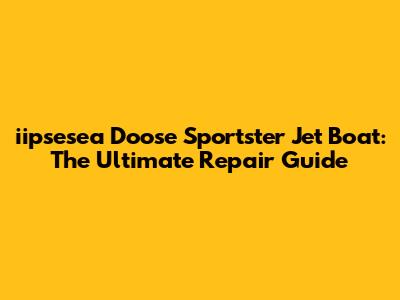 Iipsesea Doose Sportster Jet Boat: Ultimate Repair Guide