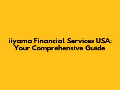 Iiyama Financial Services USA: Your Guide
