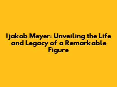 Ijakob Meyer: A Journey Through Life And Impact