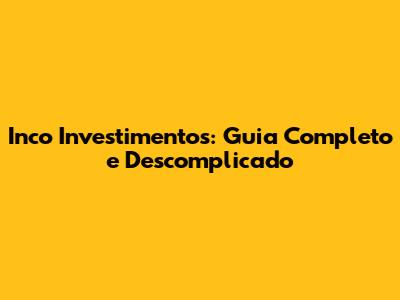 Inco Investimentos: Guia Completo E Descomplicado