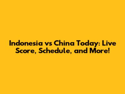 Indonesia Vs China Today: Live Score, Schedule, And More!