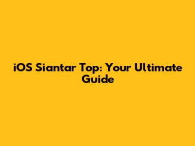 IOS Siantar Top: Your Ultimate Guide
