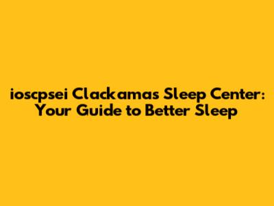 Ioscpsei Clackamas Sleep Center: Your Guide To Better Sleep