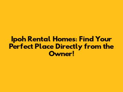Ipoh Rental Homes: Find Your Perfect Place Directly From The Owner!