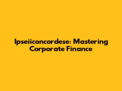 Ipseiiconcordese: Your Guide To Corporate Finance