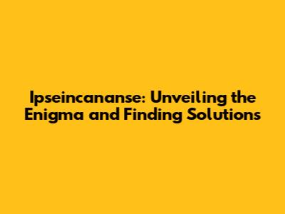 Ipseincananse: Understanding And Addressing The Issue
