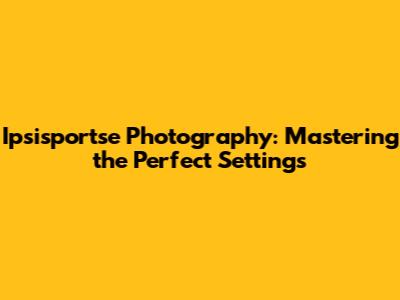 Ipsisportse Photography: Mastering The Perfect Settings