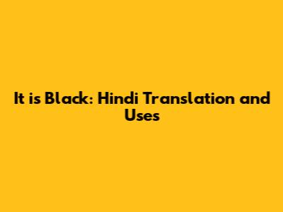 It Is Black: Hindi Translation And Uses