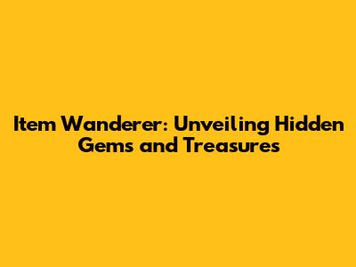 Item Wanderer: Your Ultimate Guide To Discovering Hidden Treasures