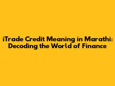 ITrade Credit: Your Guide To Credit In Marathi