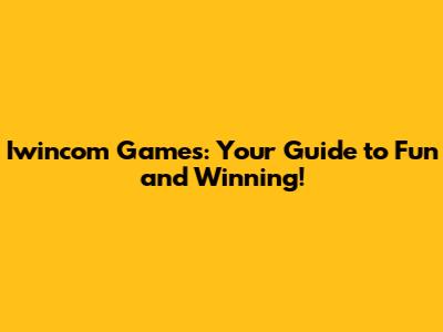 Iwincom Games: Your Guide To Fun And Winning!