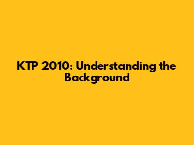 KTP 2010: Understanding The Background