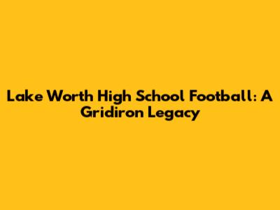 Hey guys! Let's dive into the exciting world of Lake Worth High School football! We're talking about a program with a rich history, passionate fans, and a commitment to excellence both on and off the field. This isn't just about touchdowns and tackles; it's about the community, the spirit, and the legacy that the Lake Worth High School football program has built over the years. We'll explore the team's past, present, and what the future holds for this awesome group of student-athletes.