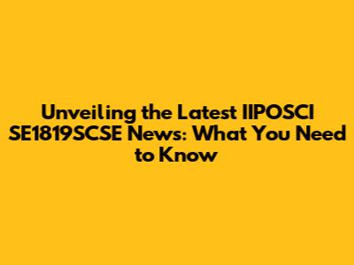 What's Happening in IIPOSCI SE1819SCSE: Key Developments and News