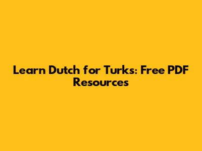 Learn Dutch For Turks: Free PDF Resources
