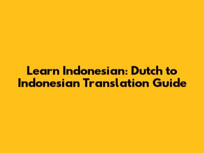 Learn Indonesian: Dutch To Indonesian Translation Guide