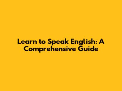 Learn To Speak English: A Comprehensive Guide