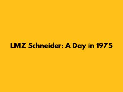 LMZ Schneider: A Day In 1975