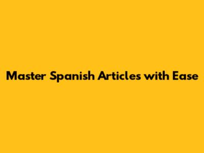 Master Spanish Articles With Ease