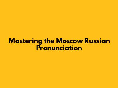 Mastering The Moscow Russian Pronunciation