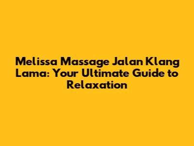 Melissa Massage Jalan Klang Lama: Your Ultimate Guide