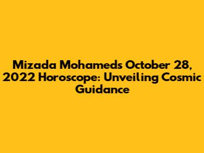 Hey guys! Let's dive into what the stars had in store for us on October 28, 2022, according to the amazing Mizada Mohamed! Mizada, a renowned astrologer, has a knack for breaking down complex cosmic events into easy-to-digest insights. In this article, we'll explore the key astrological influences she highlighted for that day and how they might have impacted various aspects of life. Get ready to journey through the celestial realms and see what the universe might have whispered to you! This is all about Mizada Mohamed's horoscope for October 28, 2022, and we're going to break down the key takeaways and what they meant for different zodiac signs. This is your chance to understand the cosmic weather and how it might have affected your life, relationships, and career. We'll be looking into the energy of the day, any significant planetary alignments, and the general vibes that Mizada interpreted for us. So, buckle up, because we're about to explore the celestial map of that day and see what gems we can find. If you're into astrology, this is going to be a fun ride through the cosmos, uncovering some of the insights that Mizada shared with us. Let's get started and uncover the mysteries of the stars!