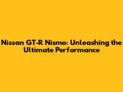 Nissan GT-R Nismo: Unleashing The Ultimate Performance