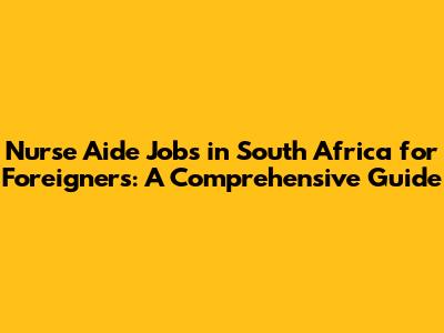 Nurse Aide Jobs In South Africa For Foreigners: A Comprehensive Guide