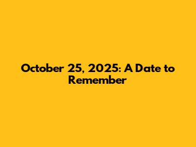 October 25, 2025: A Date To Remember