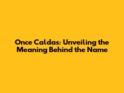 Once Caldas: Unveiling The Meaning Behind The Name