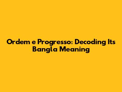 Ordem E Progresso: Decoding Its Bangla Meaning
