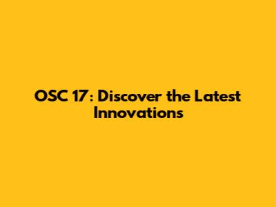 OSC 17: Discover The Latest Innovations